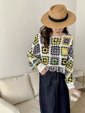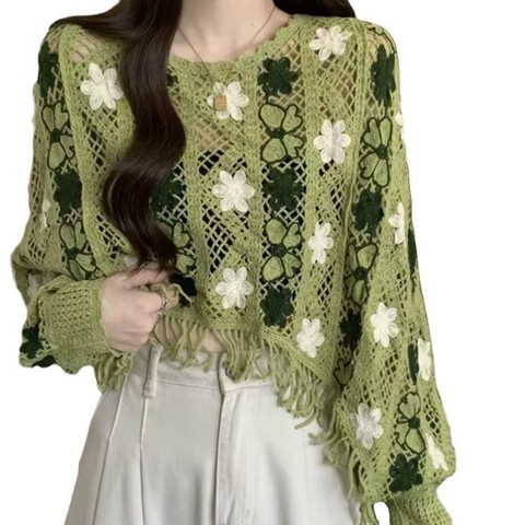 Damen benutzer definierte bestickte Baumwolle Pullover OEM ODM Casual Blumenmuster Weihnachts pullover gehäkelten Stil